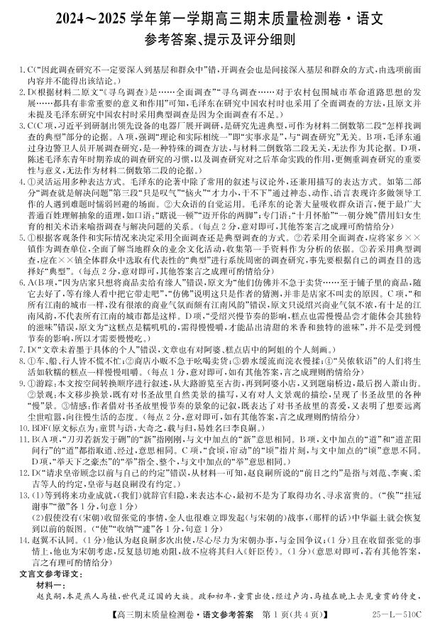 山西省卓越联盟2024-2025学年上学期1月高三期末质量检测语文答案