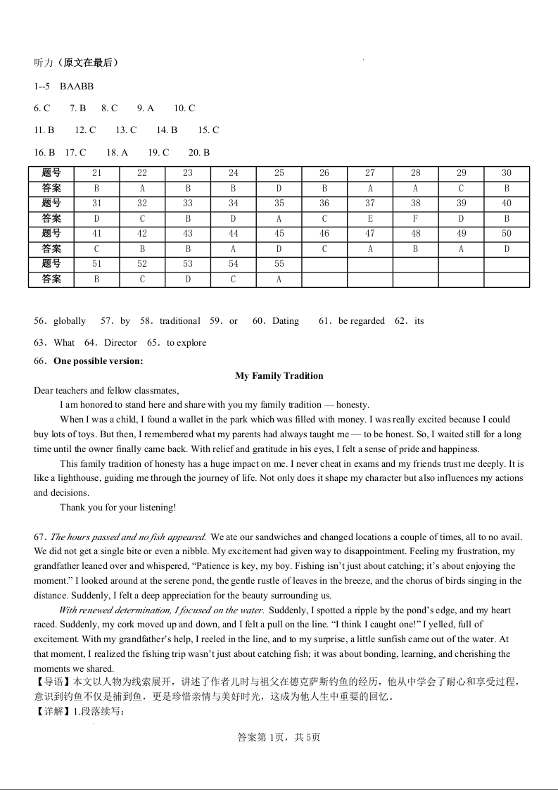 宁夏石嘴山市第一中学2025届上学期1月高三期末考试英语答案