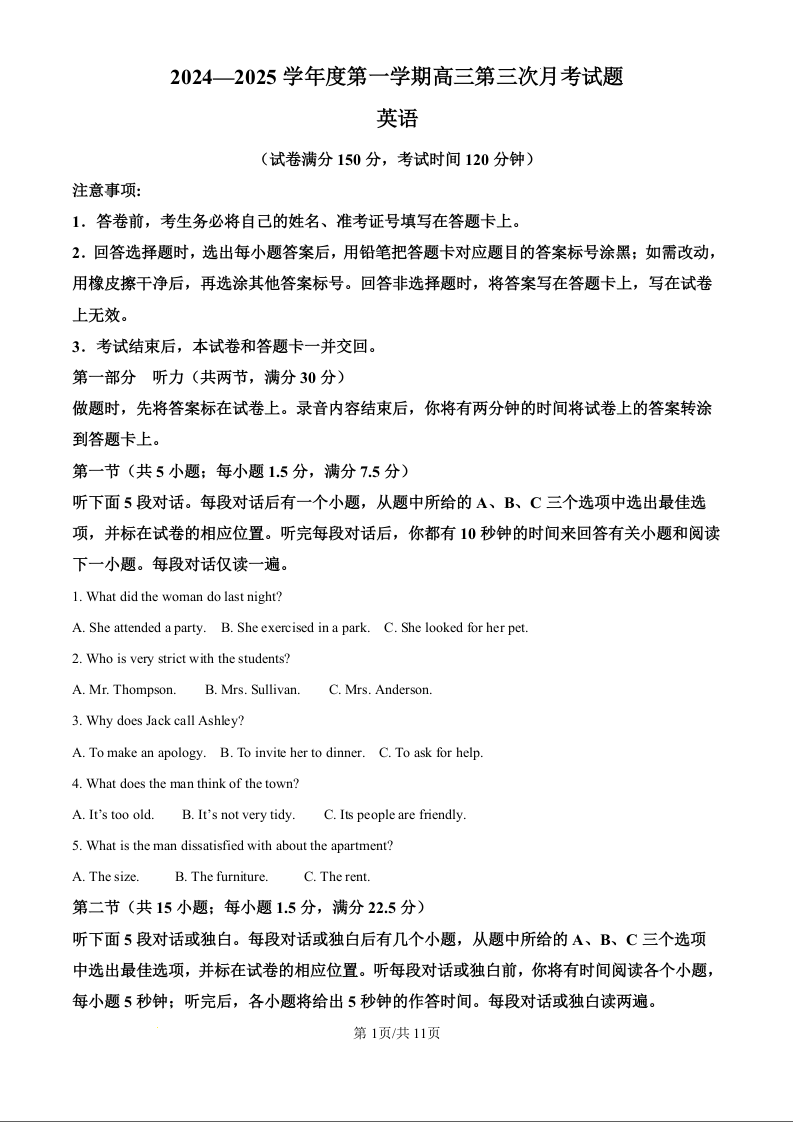 海南省文昌中学2025届高三上学期1月第三次月考英语(原卷版)