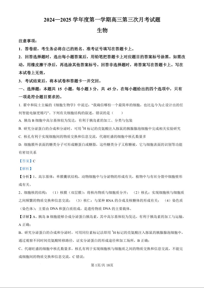 海南省文昌中学2025届高三上学期1月第三次月考生物(精品解析版)