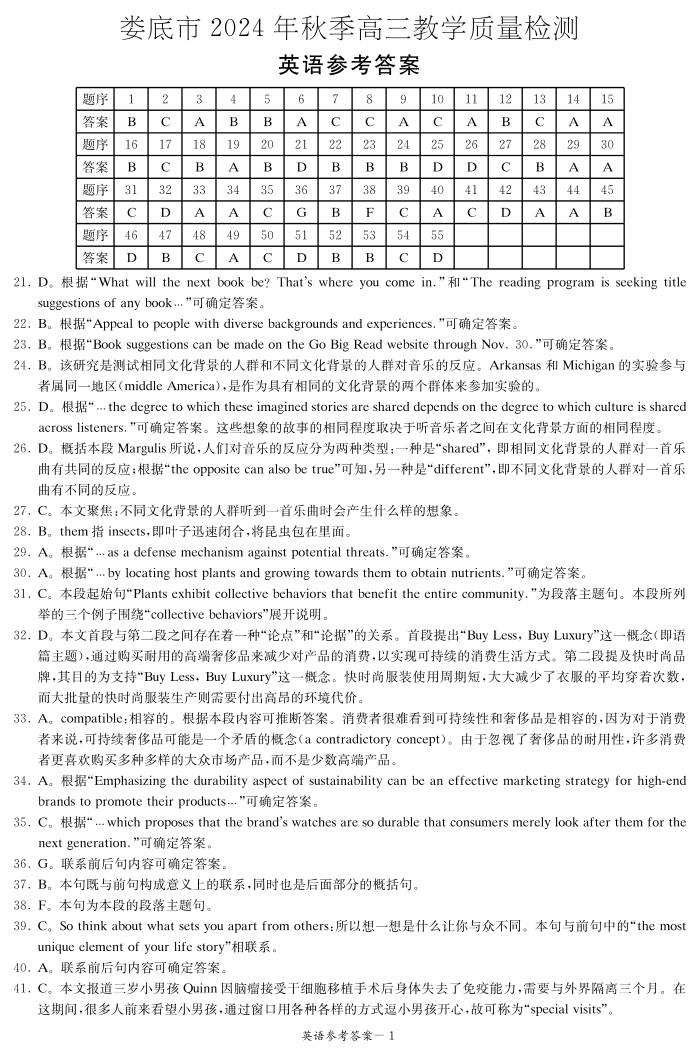 湖南省娄底市2025届上学期1月高三期末质量检测英语答案