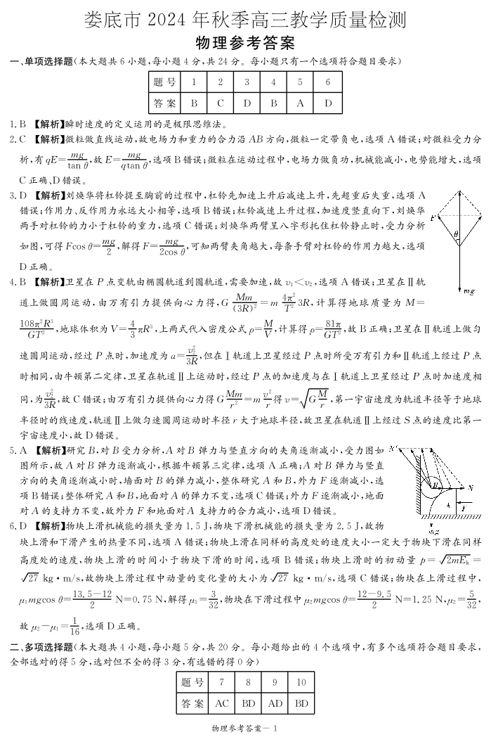 湖南省娄底市2025届上学期1月高三期末质量检测物理答案