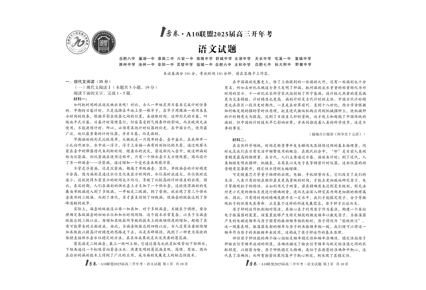 安徽省1号卷·A10联盟2025届高三下学期2月开年考语文