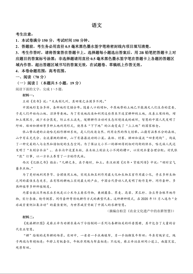 山西省卓越联盟2025届高三下学期2月开学质量检测语文+答案