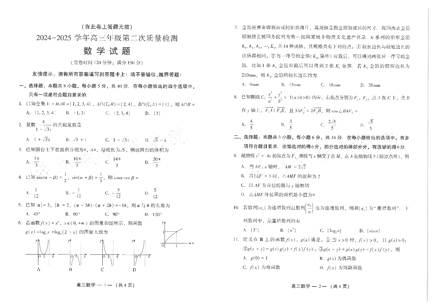 福建省福州市2024-2025学年下学期2月高三第二次质量检测数学