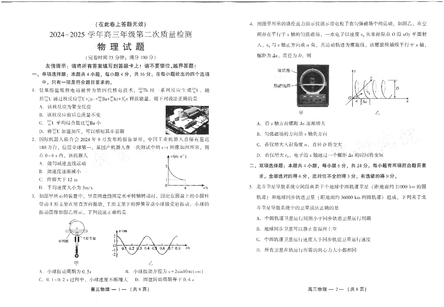 福建省福州市2024-2025学年下学期2月高三第二次质量检测物理