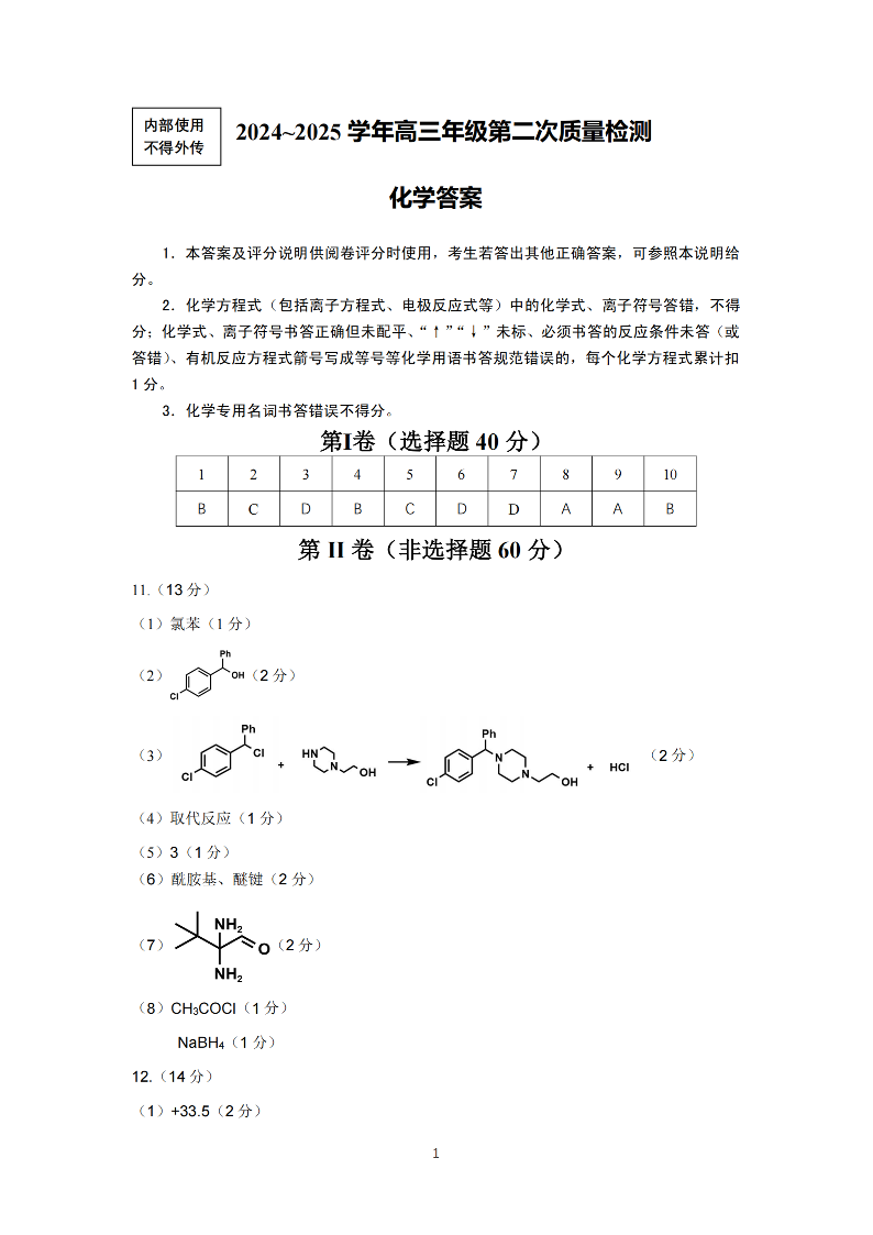 福建省福州市2024-2025学年下学期2月高三第二次质量检测化学答案