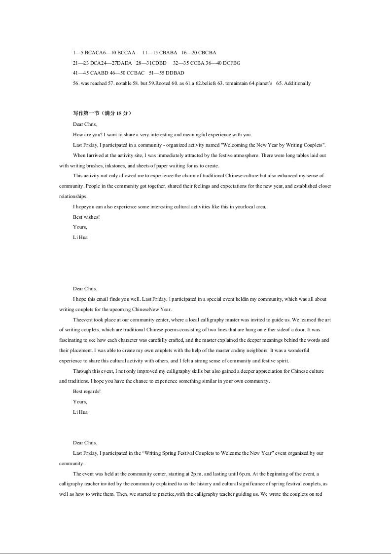 湖北省华中师大一附中2024-2025学年下学期2月高三开学考试英语答案