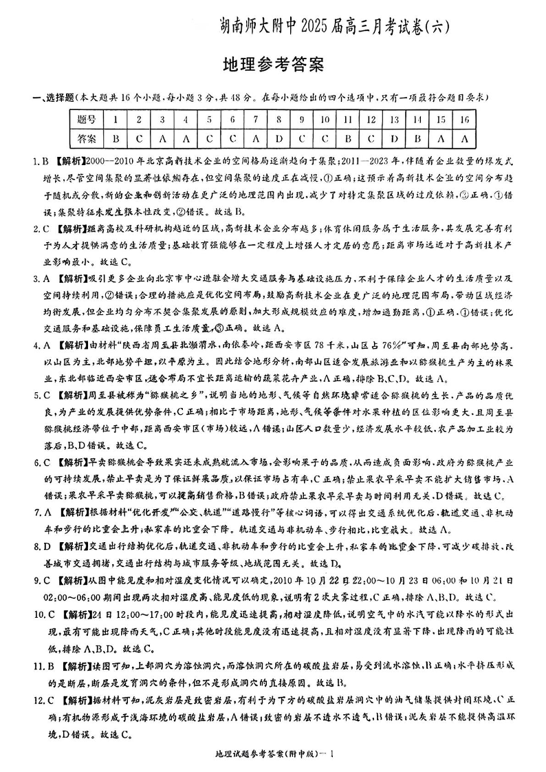 湖南省师大附中2024-2025 学年下学期2月高三月考试卷(六)地理答案