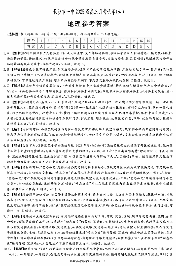 湖南省长沙市一中 2024-2025 学年下学期2月高三月考试卷(六)地理答案