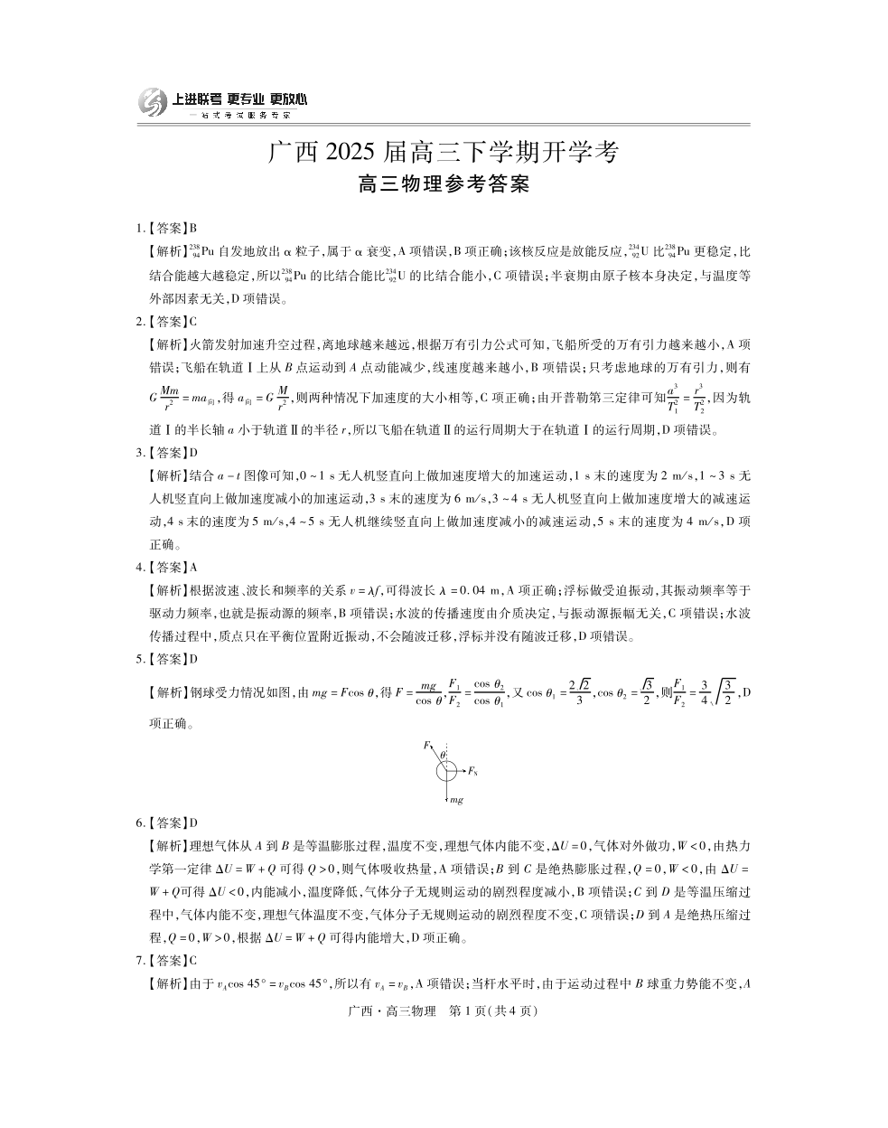 广西省稳派上进联考2024-2025学年下学期2月高三开学考试物理答案