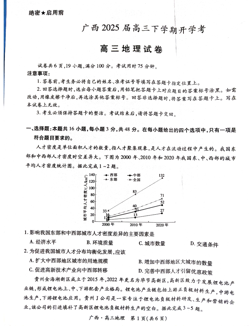 广西省稳派上进联考2024-2025学年下学期2月高三开学考试地理