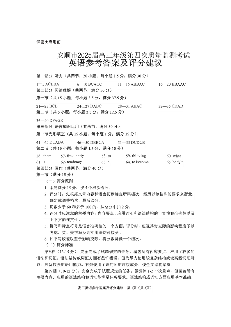 贵州省跨区域联考2024-2025学年下学期高三适应性考试(一)英语答案