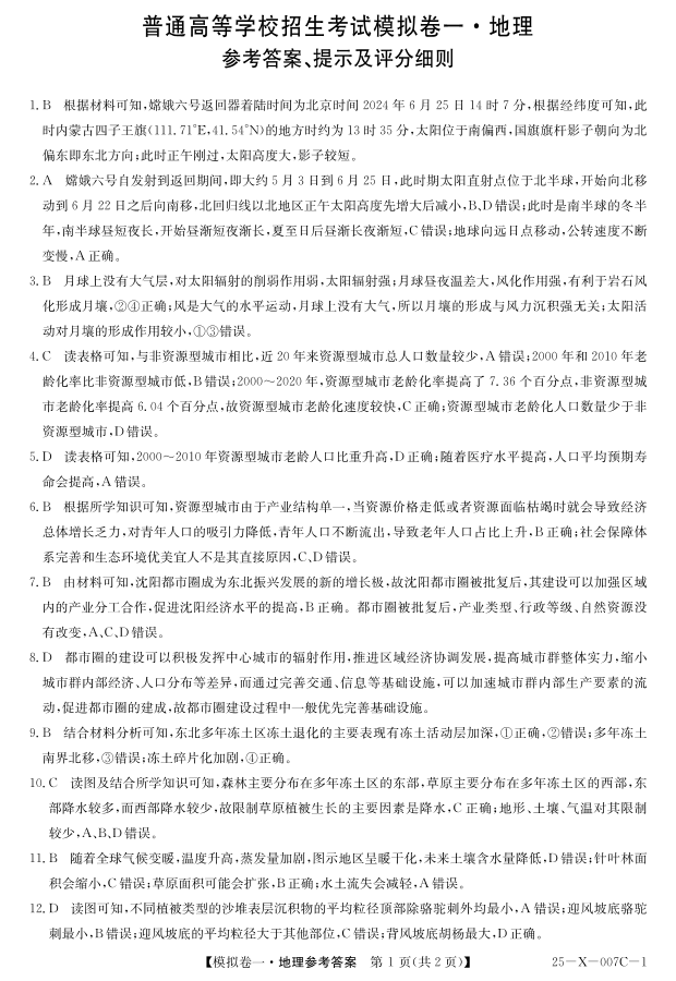 河南省新高中创新联盟2024-2025学年下学期高三模拟卷一地理答案