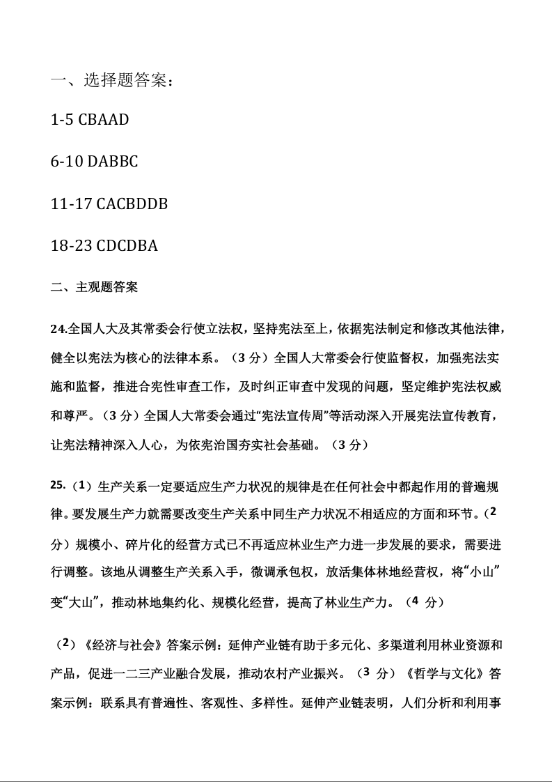 2025年1月浙江省普通高等学校招生选考科目考试政治答案