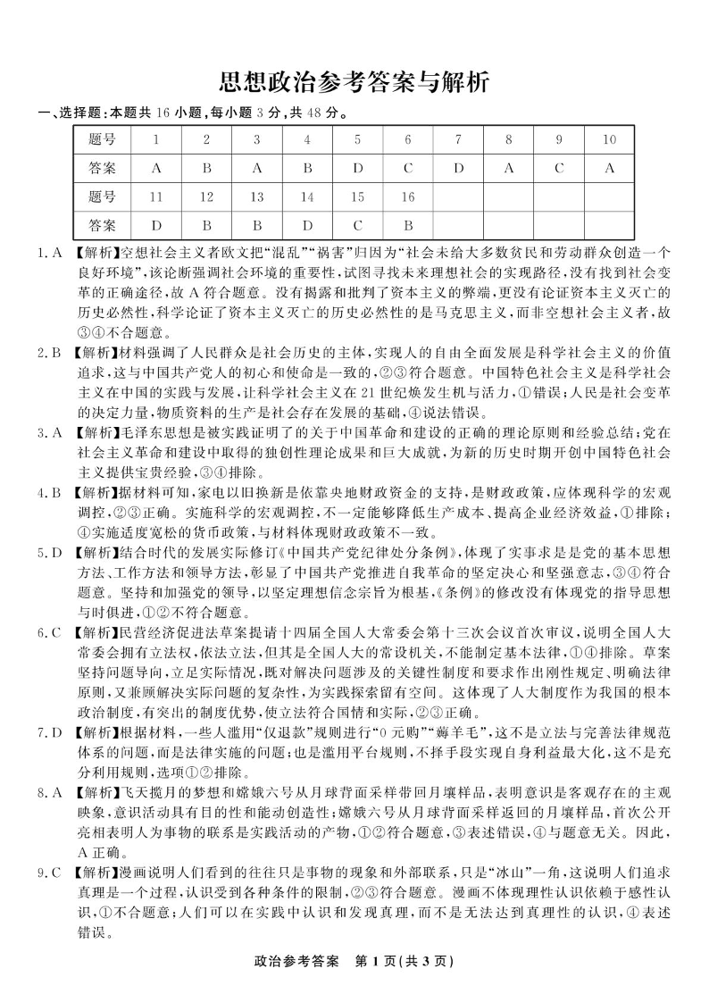 江西省九江市十校联考2024-2025学年下学期2月高三月考政治答案