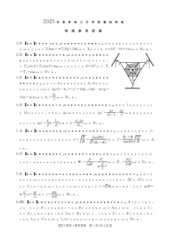 广西壮族自治区桂林市2024-2025春季高三开学质量检测物理答案