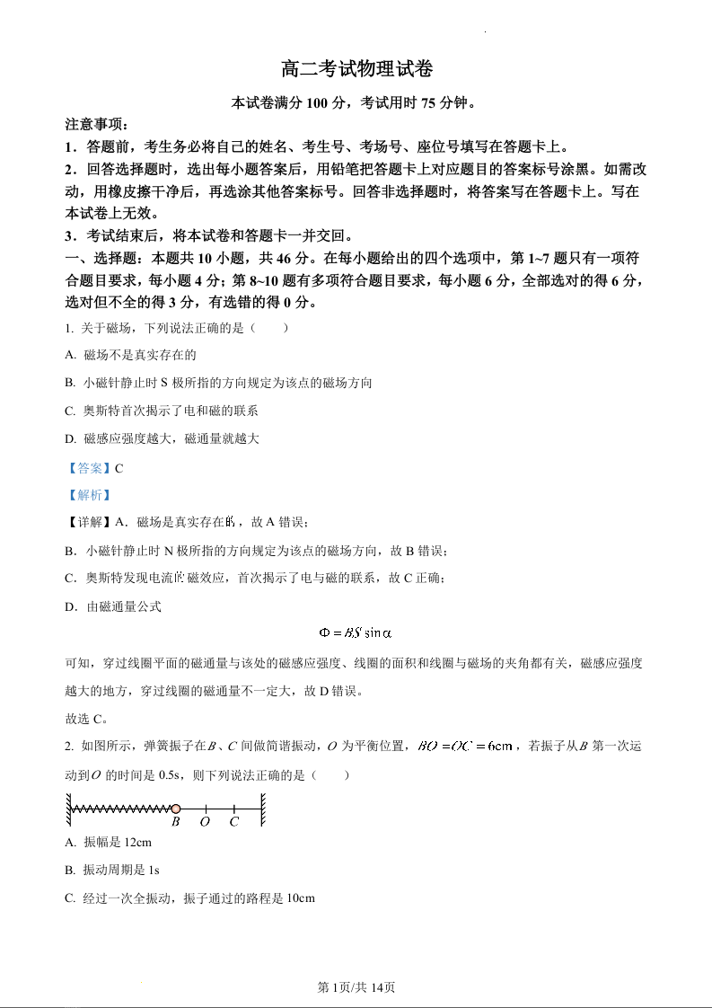 辽宁省辽阳市2023-2024学年高二上学期1月期末考试物理(精品解析版)