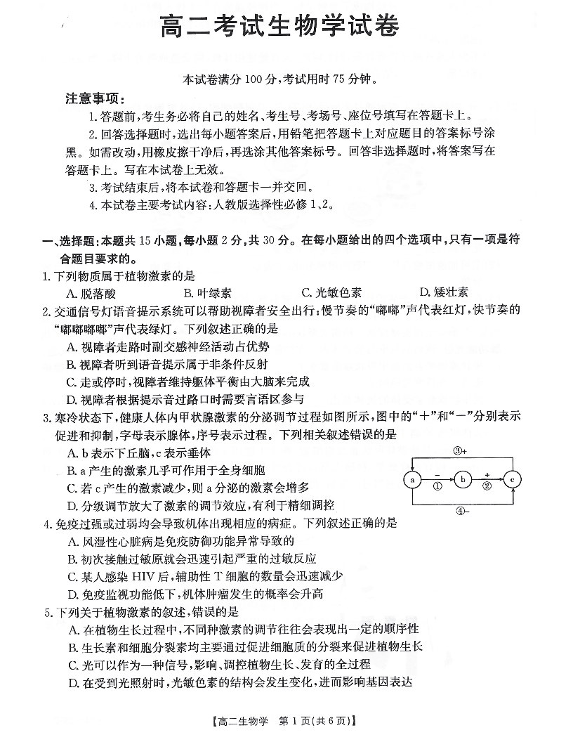 辽宁省辽阳市2023-2024学年高二上学期1月期末考试生物