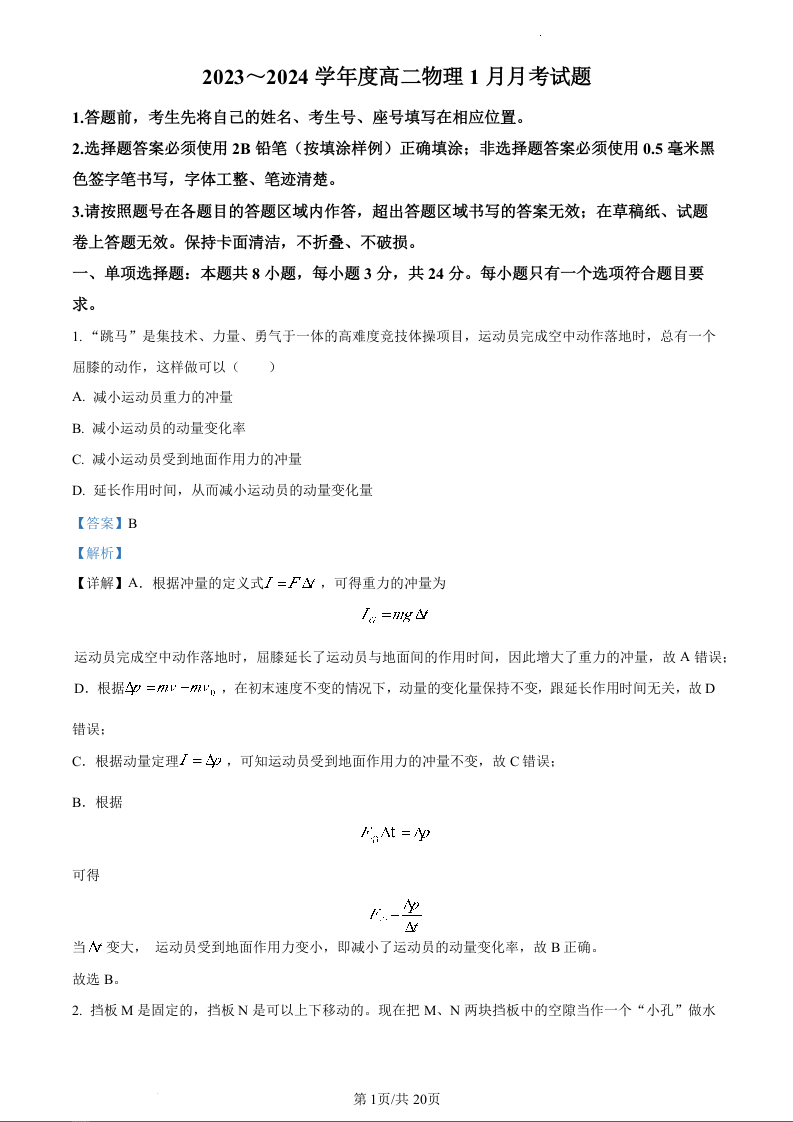 山东省威海市乳山市银滩高级中学2023-2024学年高二上学期1月考试物理(精品解析版)