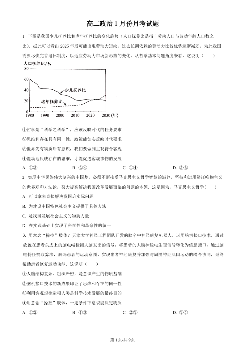 山东省威海市乳山市银滩高级中学2023-2024学年高二上学期1月考试政治(原卷版)