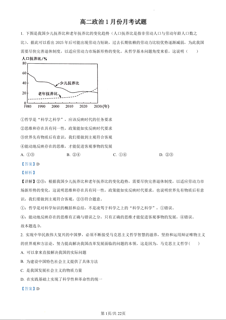 山东省威海市乳山市银滩高级中学2023-2024学年高二上学期1月考试政治(精品解析版)