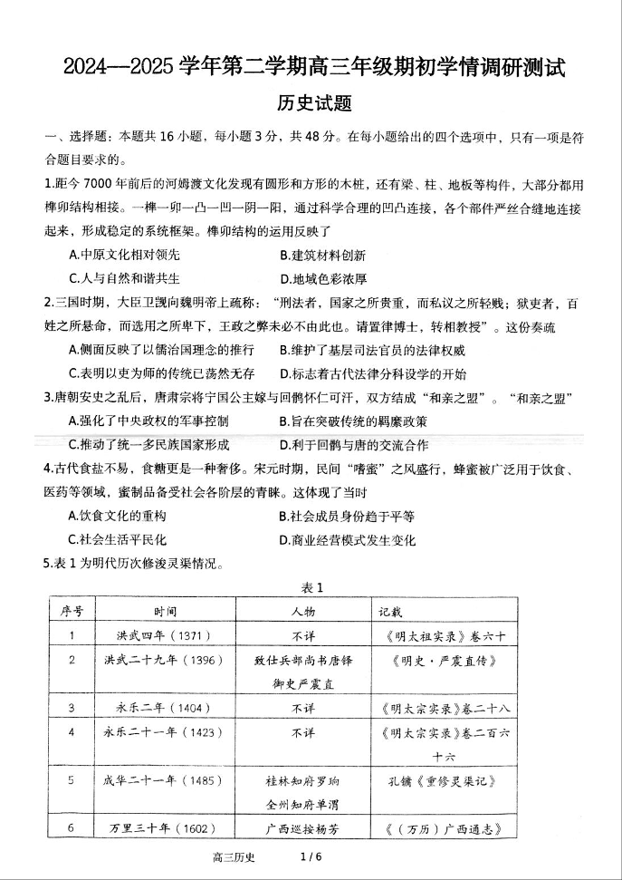 江苏省扬州市高邮市2024-2025学年下学期高三开学考试历史+答案