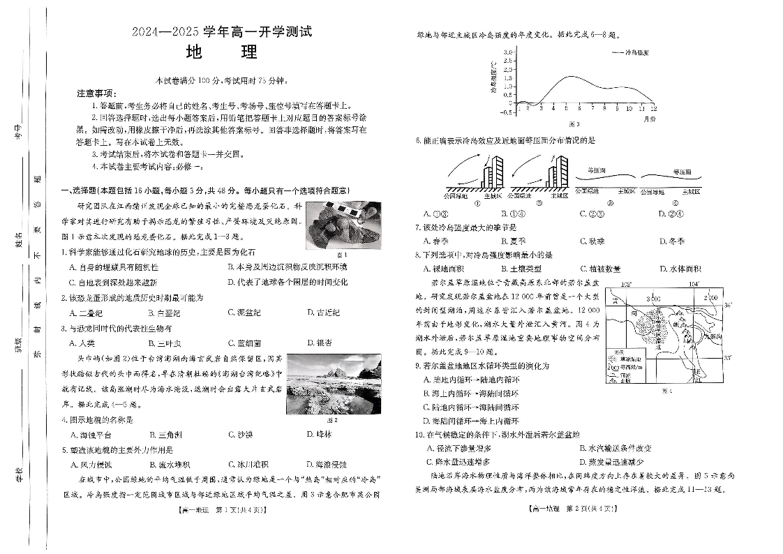 河南省区域高中2024-2025学年下学期高一开学考试地理