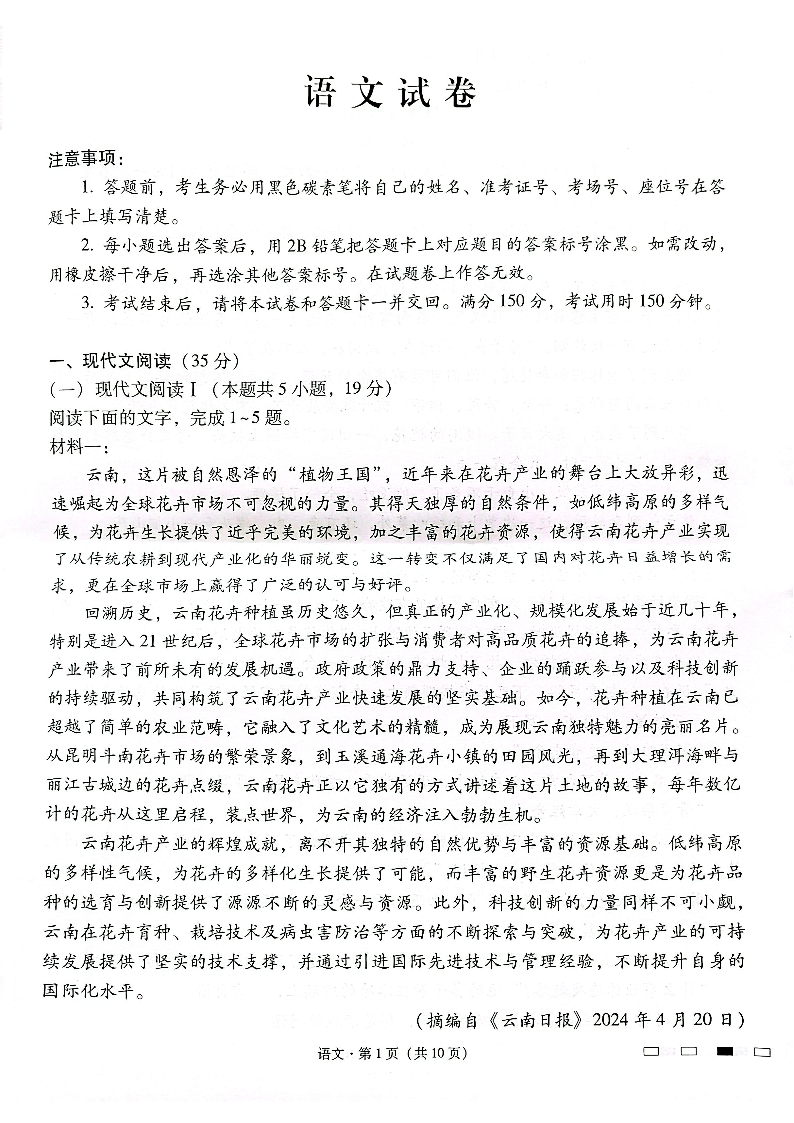 云南省师大学附中2024-2025学年下学期高三开学考试语文