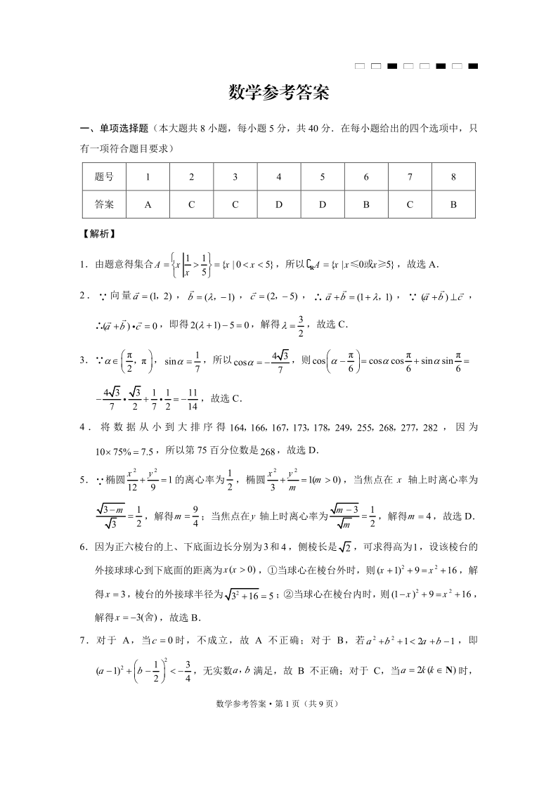 云南省师大学附中2024-2025学年下学期高三开学考试数学答案