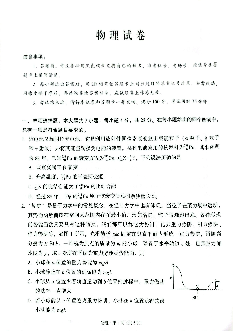 云南省师大学附中2024-2025学年下学期高三开学考试物理