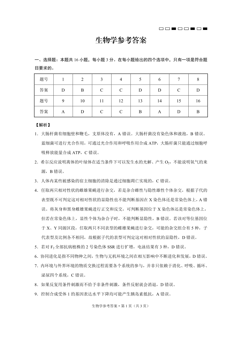 云南省师大学附中2024-2025学年下学期高三开学考试生物答案