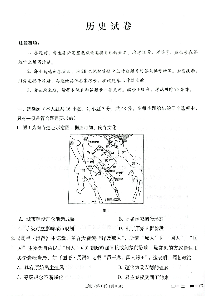 云南省师大学附中2024-2025学年下学期高三开学考试历史