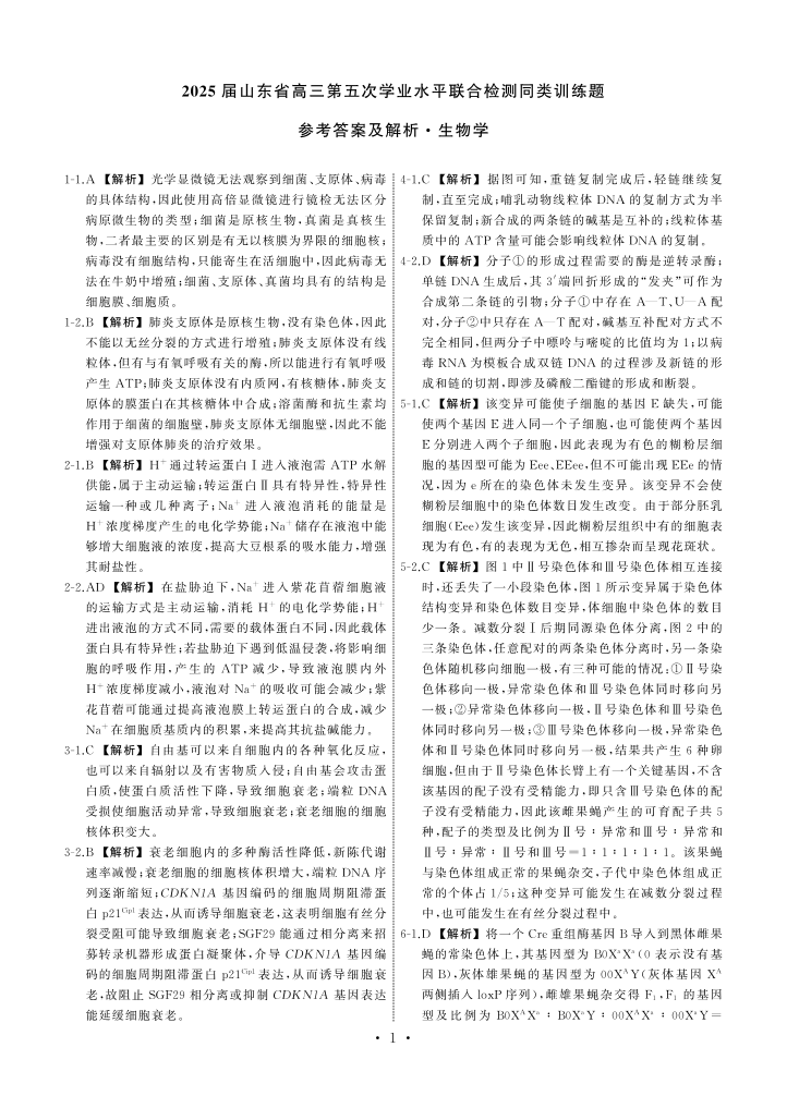 山东省齐鲁名校联考2024-2025学年下学期高三联合检测(五)生物答案