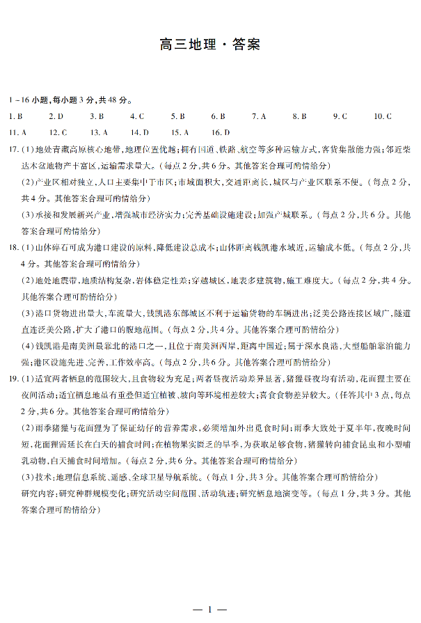 湖南省区域高中2024-2025学年下学期2月高三联考地理答案
