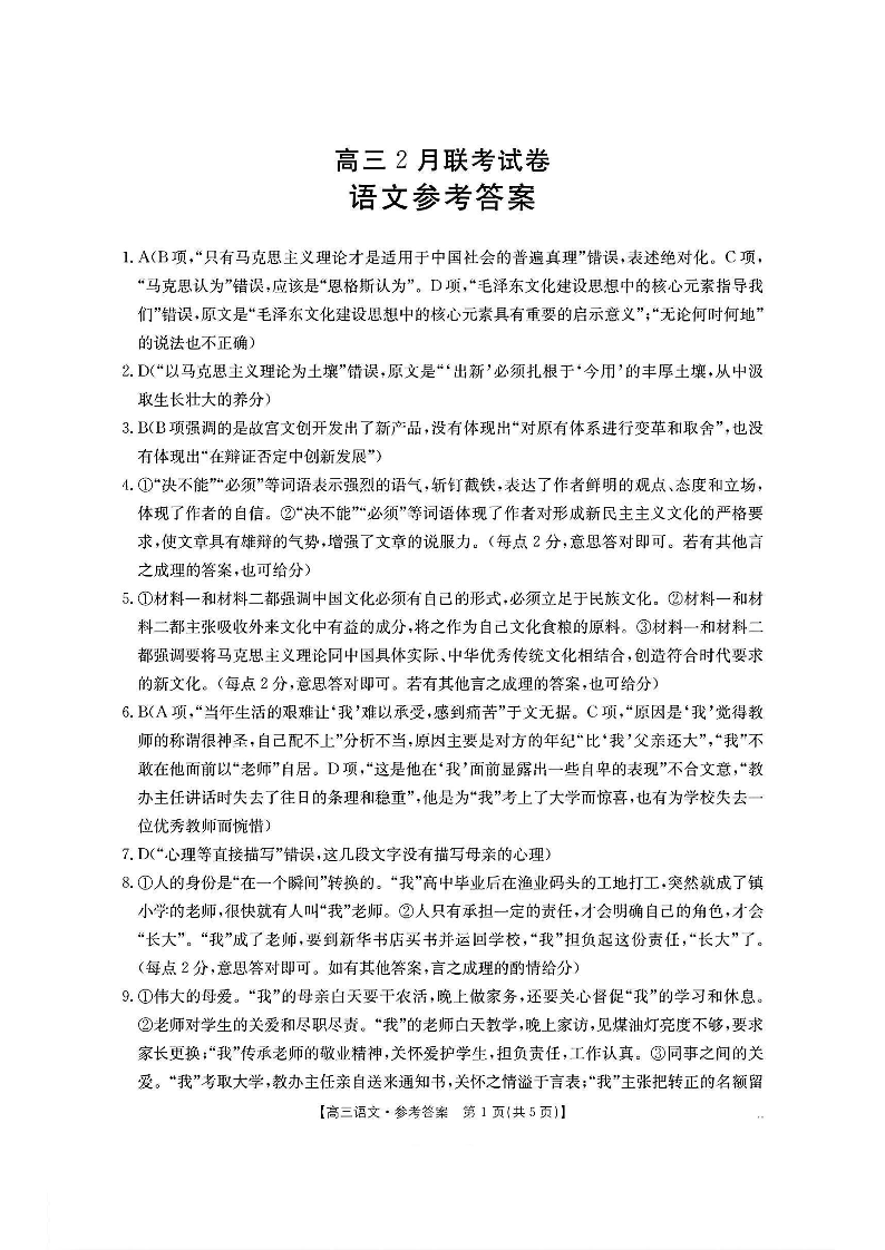 湖北省鄂东新领先协作体2024-2025学年下学期2月高三调考语文答案