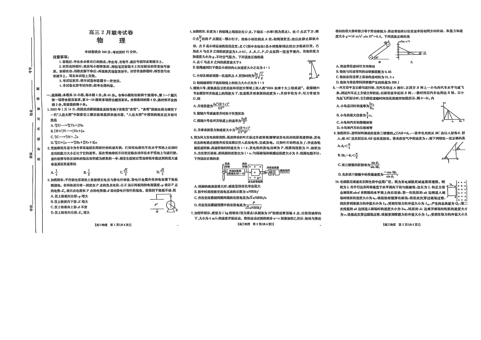 湖北省鄂东新领先协作体2024-2025学年下学期2月高三调考物理
