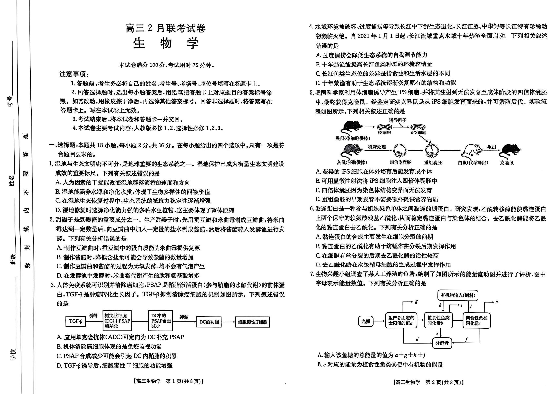 湖北省鄂东新领先协作体2024-2025学年下学期2月高三调考生物
