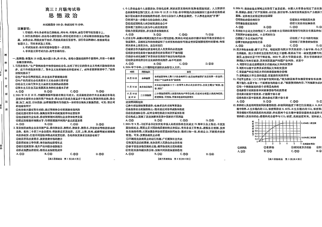 湖北省鄂东新领先协作体2024-2025学年下学期2月高三调考政治