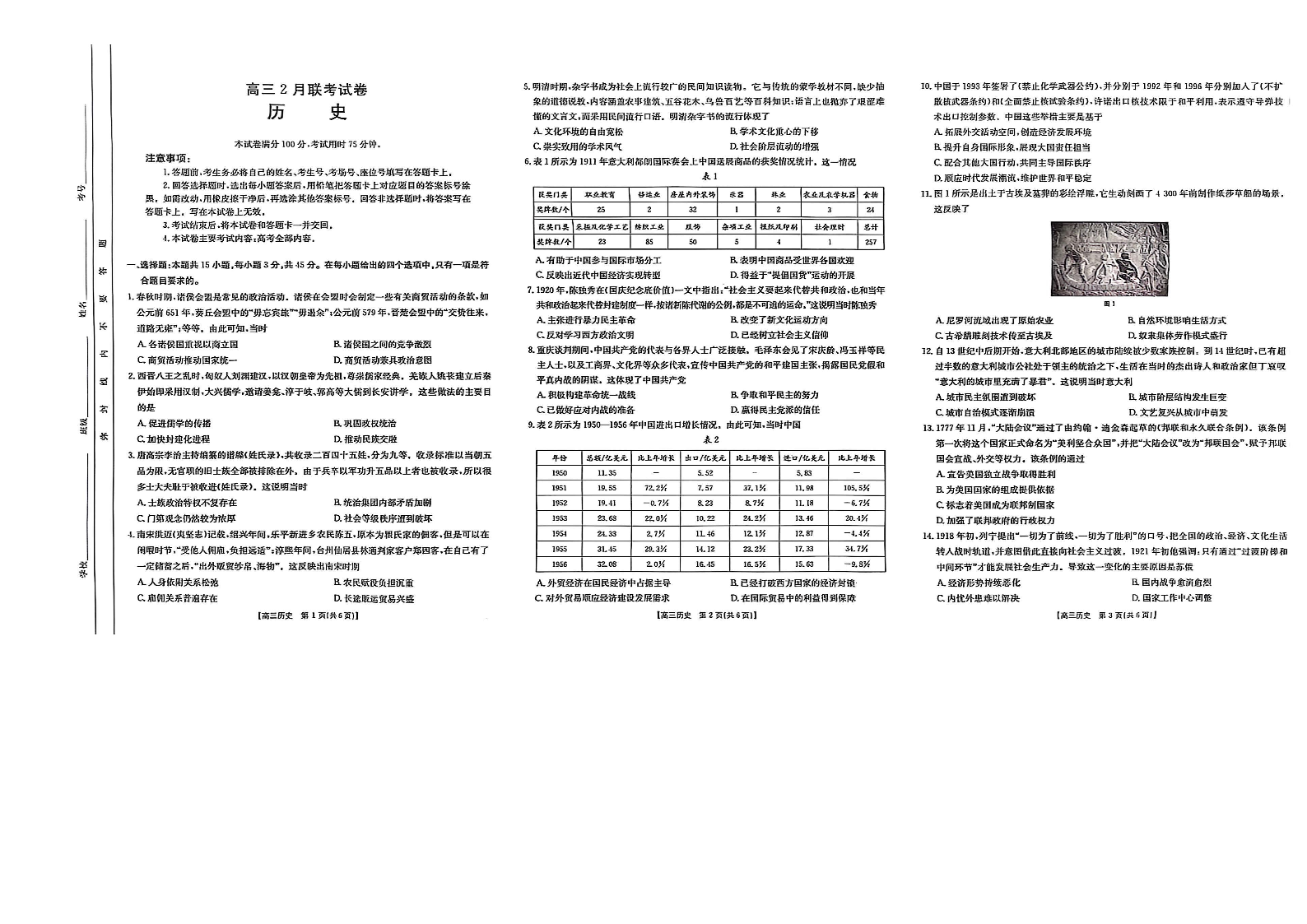 湖北省鄂东新领先协作体2024-2025学年下学期2月高三调考历史