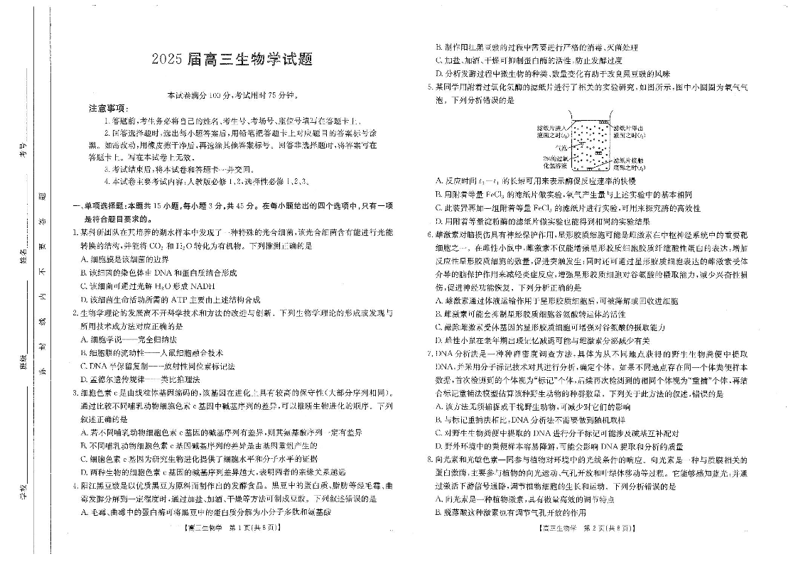 四川省部分学校2024-2025学年下学期2月高三开学考试生物+答案