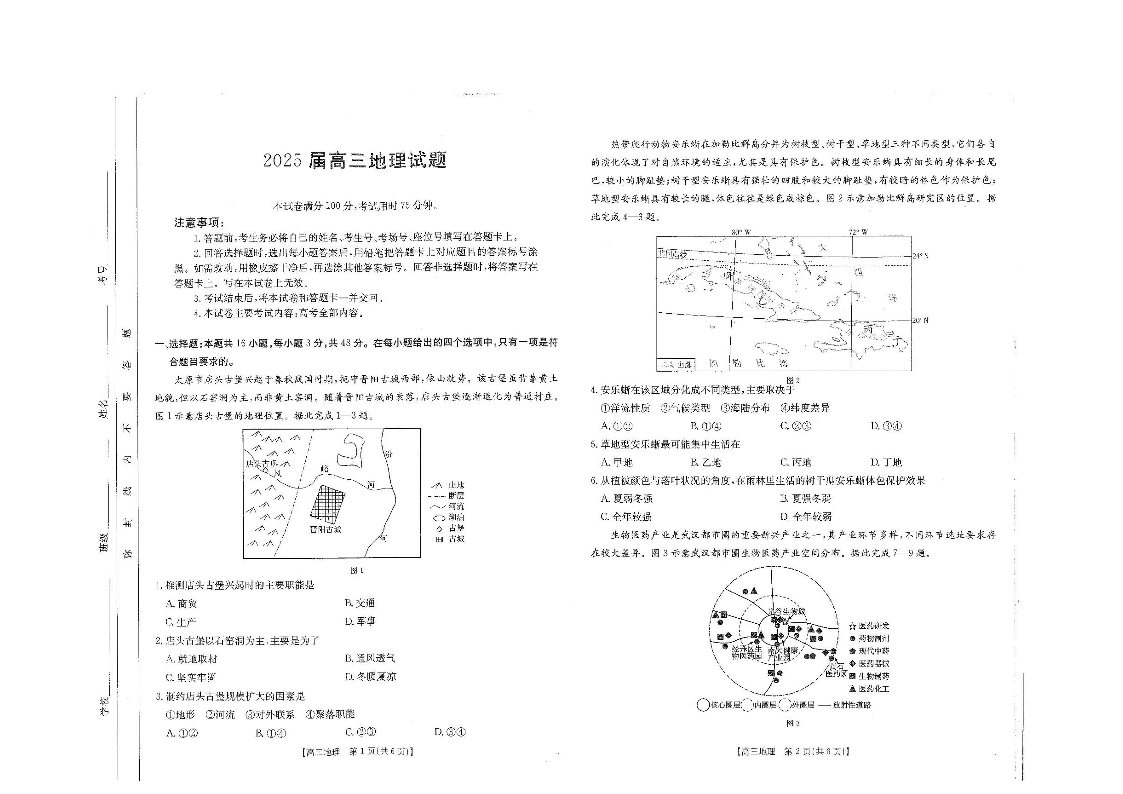 四川省部分学校2024-2025学年下学期2月高三开学考试地理+答案