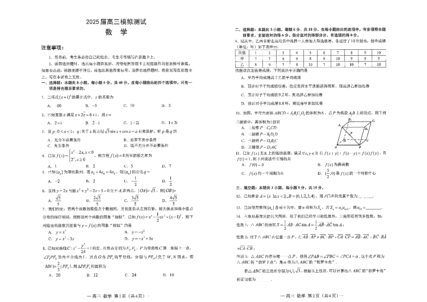 江西省南昌市2024-2025学年高三第一次模拟测试(一模)数学