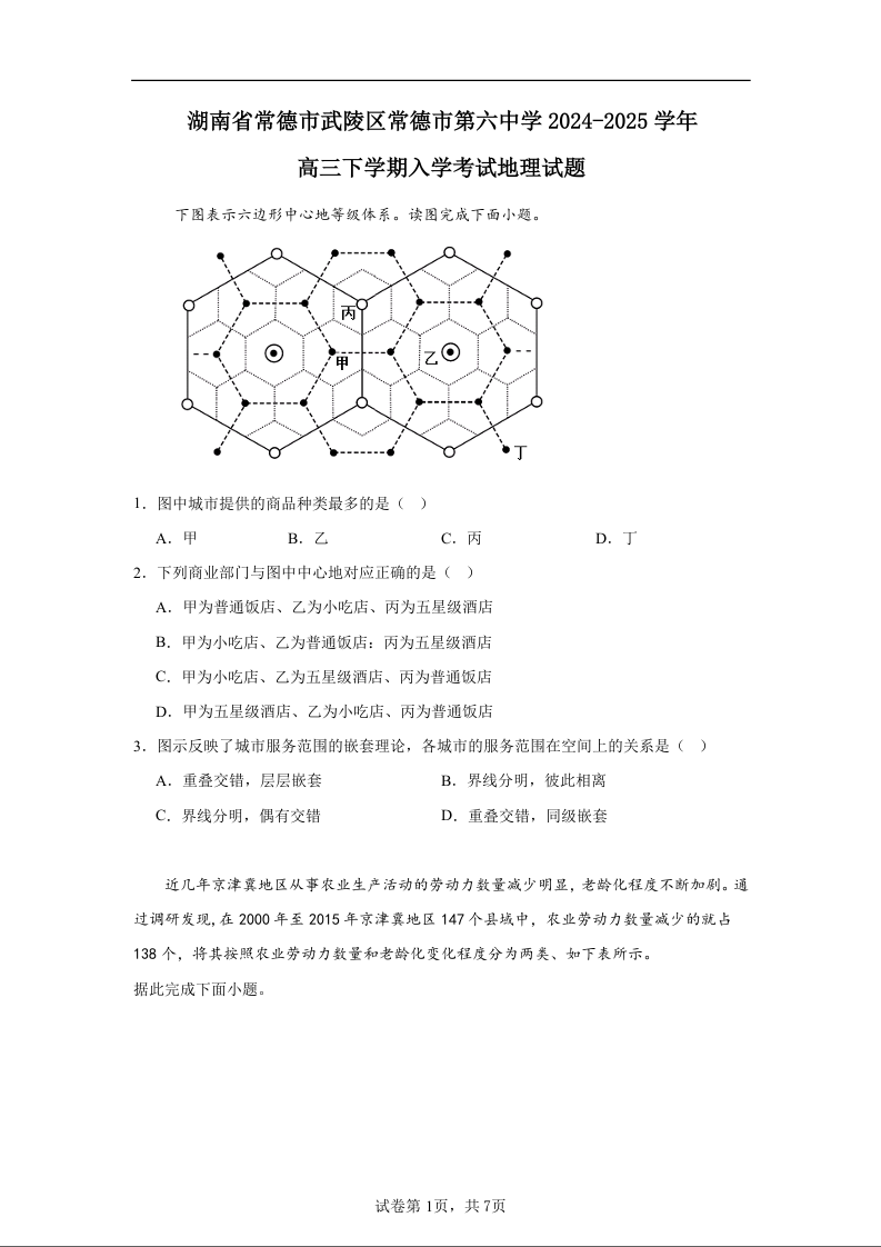 湖南省常德市第六中学2024-2025学年下学期高三开学考试地理+答案
