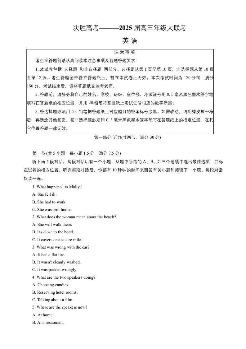 江苏省苏州市九校2024-2025学年下学期2月高三联考英语