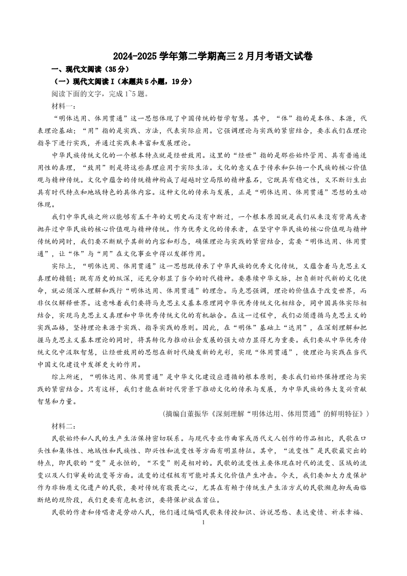 江西省南昌市第十九中学2024-2025学年下学期2月高三月考测试语文