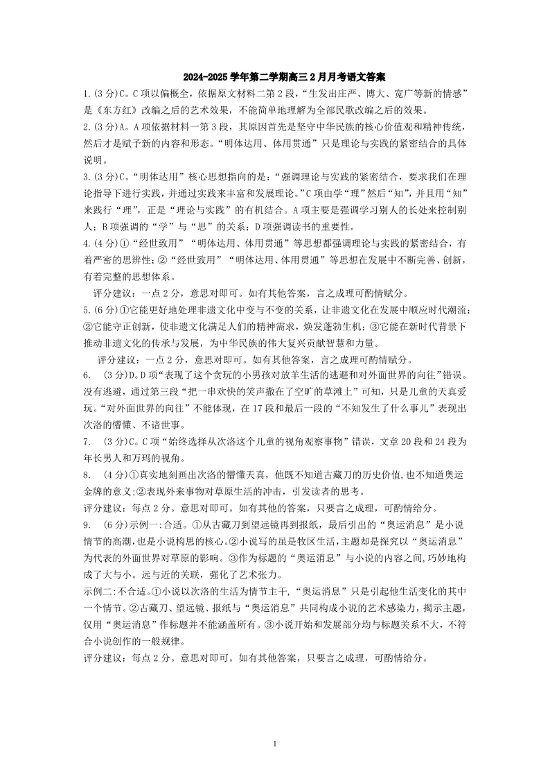 江西省南昌市第十九中学2024-2025学年下学期2月高三月考测试语文答案