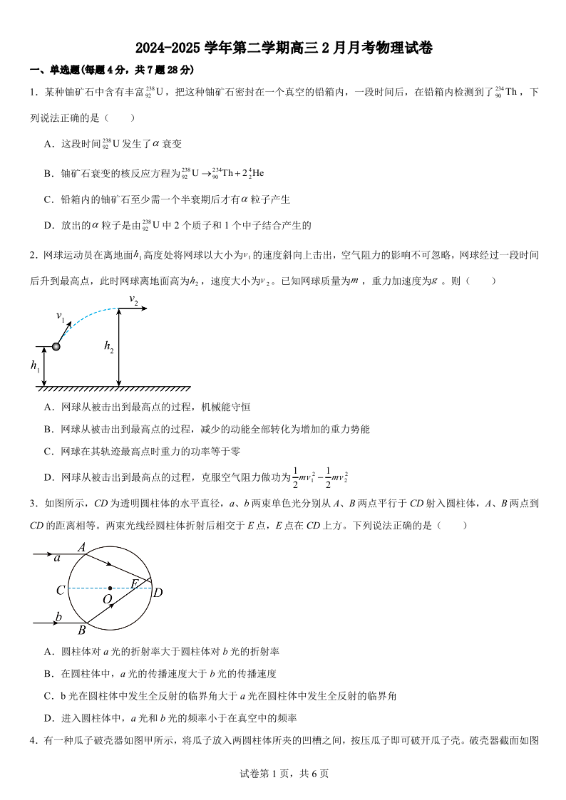 江西省南昌市第十九中学2024-2025学年下学期2月高三月考测试物理