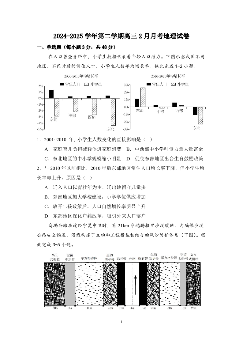 江西省南昌市第十九中学2024-2025学年下学期2月高三月考测试地理