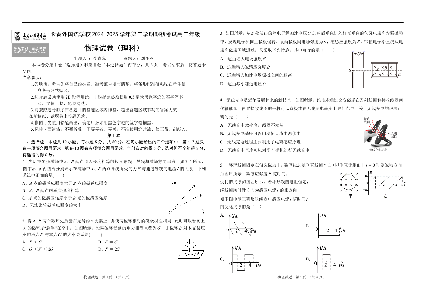 吉林省长春市外国语学校2024-2025学年下学期高二开学考试物理+答案